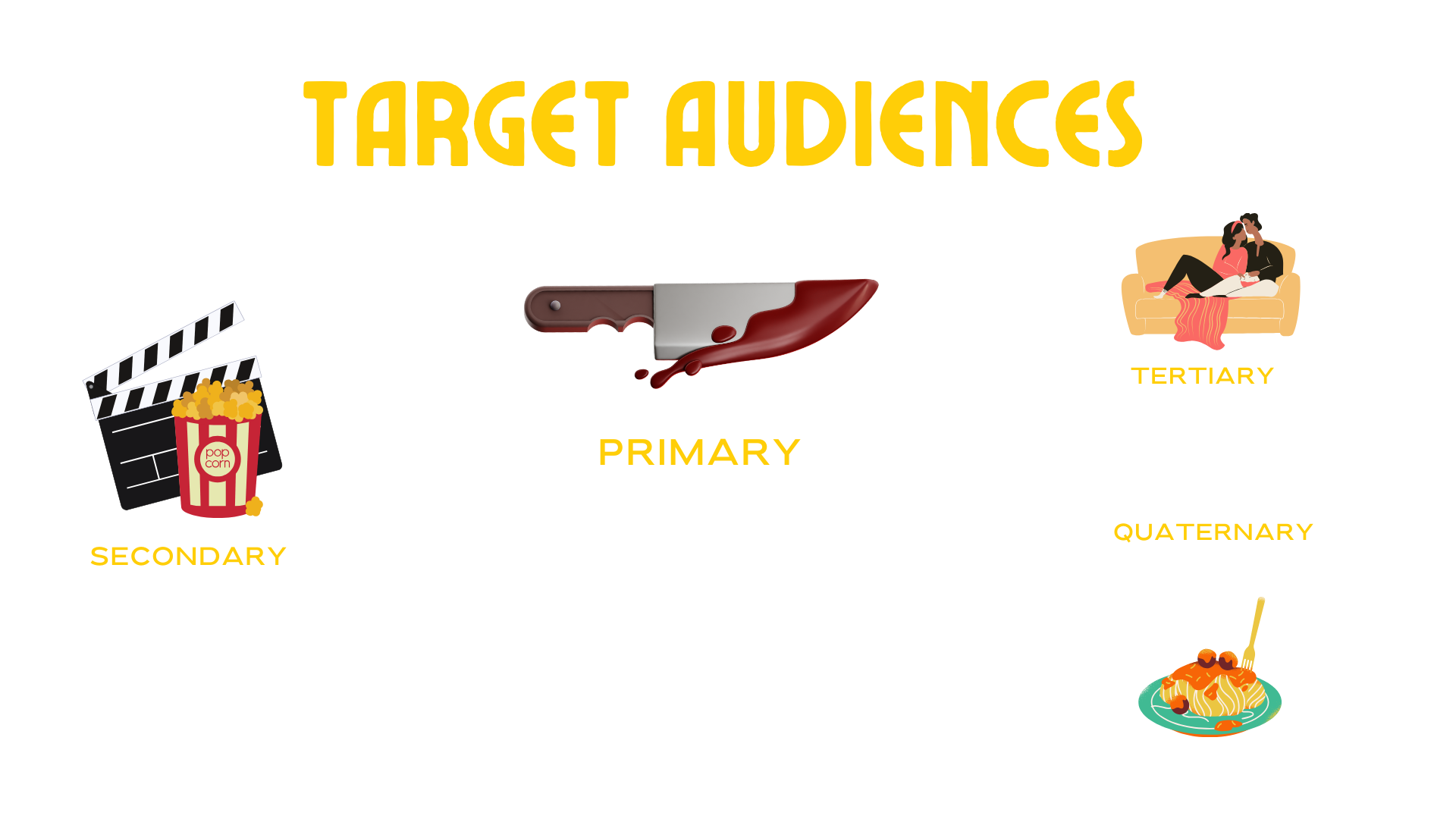 Following our festival & roadshow awareness campaign, we will release physical media of the movie (4K, Blu-rays, VHS) and of the original score (Vinyl, CD, tapes). These high quality, high cost items are aimed at hardcore movie + thriller/horror fans, which we believe will be the audience we will most likely attract during our initial festival & theater run